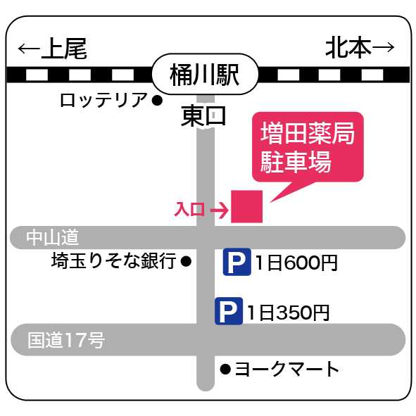 埼玉りそな銀行さん斜め前の増田薬局駐車場です。
